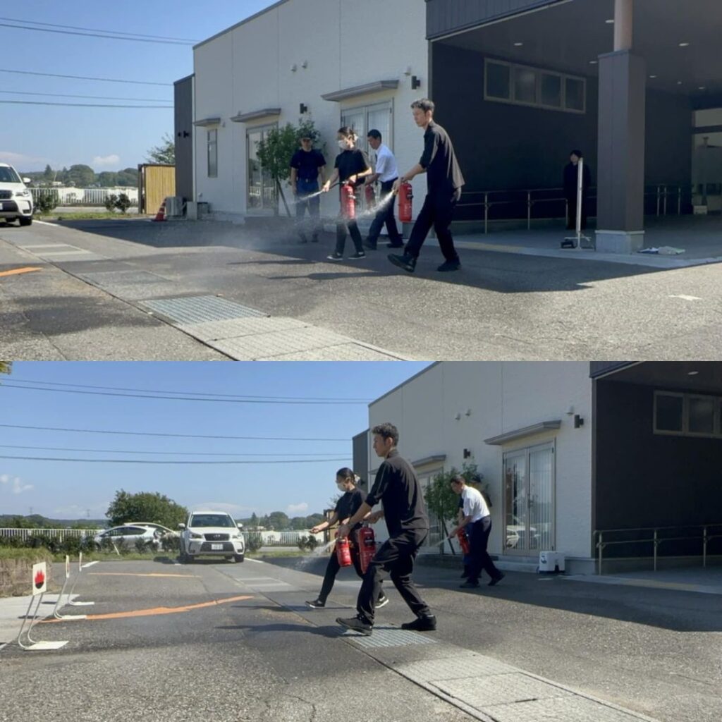消防署の方々の指導のもと、初期消火や避難誘導の手順を一つひとつ確認。