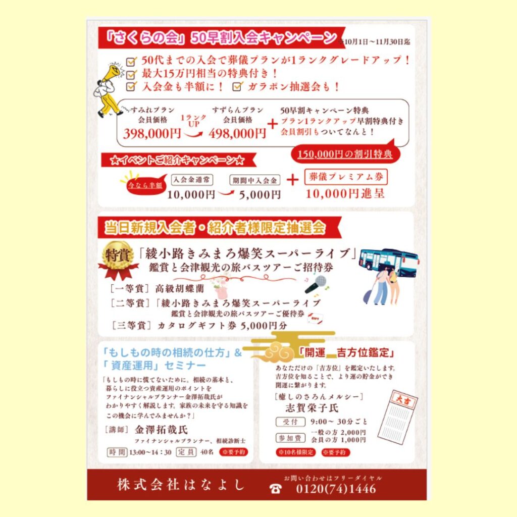 お申し込みは株式会社はなよし(0120-74-1446)まで。