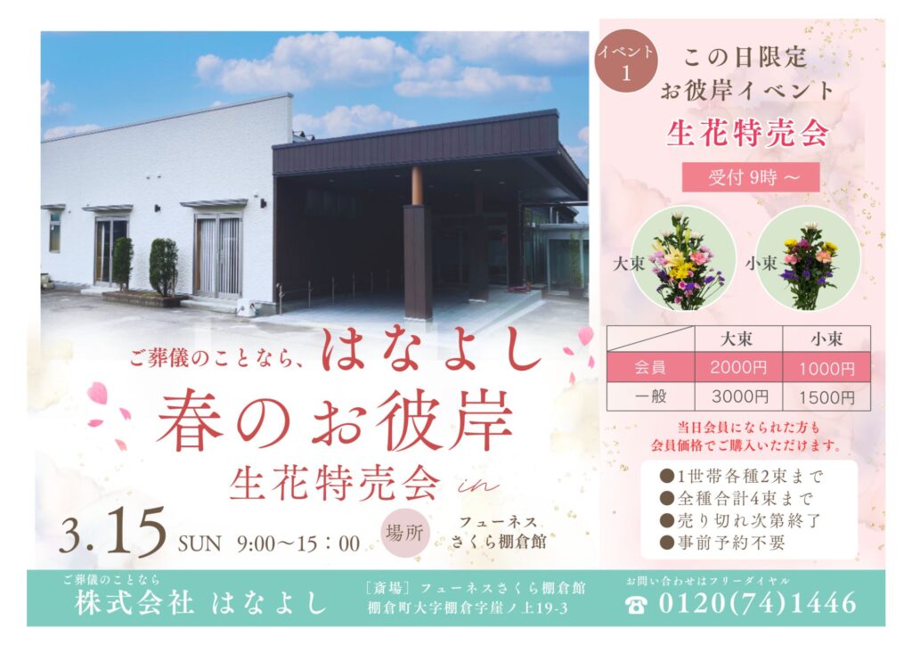 🌸 3/15(日)開催!春のお彼岸イベント 🌸