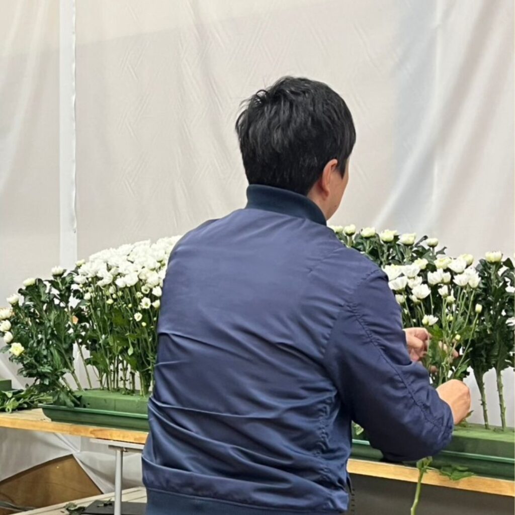 ベテランから若手まで、スタッフ一同が真剣な眼差しで花と向き合い、